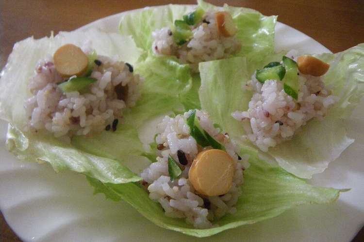 チーズ入り 混ぜご飯のレタス巻きおにぎり レシピ 作り方 By ぷ みぃまま 楽天レシピ